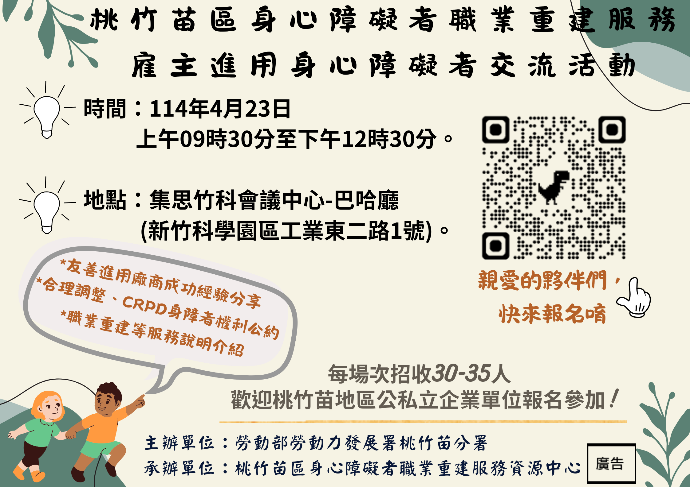◆主辦單位:勞動部勞動力發展署桃竹苗分署。